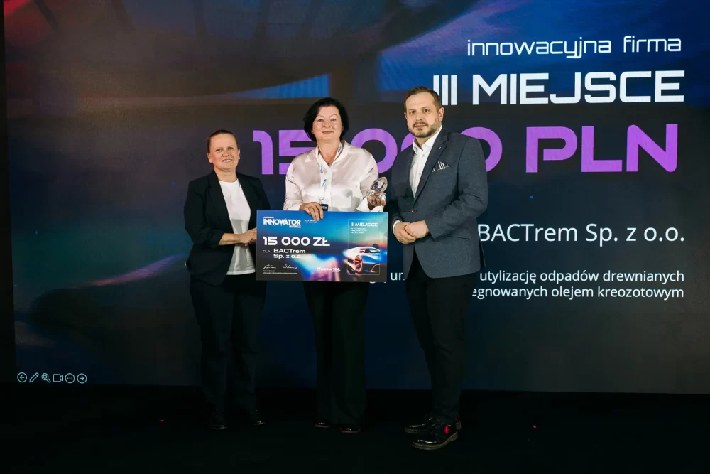 Mamy kolejny powód do dumy – firma BACTrem zdobyła III miejsce w kategorii Innowacyjna Firma w XVII edycji konkursu Innowator Mazowsza. Nagrodę otrzymaliśmy za opracowanie niskoemisyjnej technologii utylizacji niebezpiecznych odpadów drewnianych impregnowanych olejem kreozotowym – unikalnego na skalę Europy, kompleksowego rozwiązania w duchu zero waste, które pozwoli wyeliminować te rakotwórcze materiały.